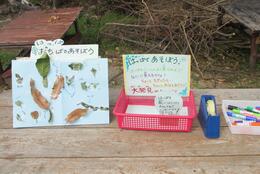 葉っぱを紙にはりつけてあそんでね。ペンで書きたしても楽しいよ。