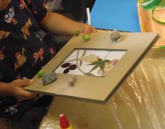 枠にもキッズパークでひろった実をつけたり、画用紙を貼ったり、アレンジしました。