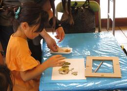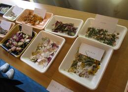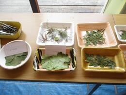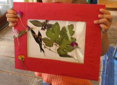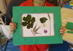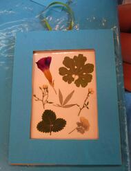 キッズパークで育ったお花や葉っぱを押し花にしました。