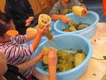 キッズパークで大切に育てたへちまでたわしをつくってみたよ!