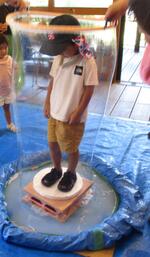 子供たちがシャボン玉に包まれる企画では、一人ひとりシャボン玉の中へ。