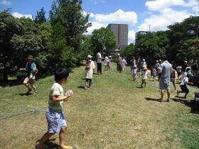 芦原地区子ども会連絡協議会主催で「水あそびでたのしもう!シャボン玉あそびと水風船」が開催されました。