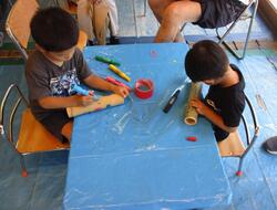 工作教室ではたこ作り、たこあげ、木工工作をしましたよ