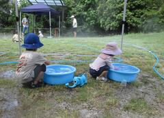 キッズパークの芝生一面に散水シャワーが登場!気持ちよかったね!