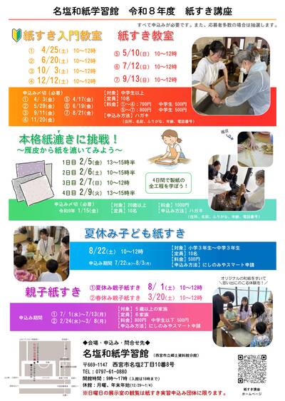 詳細は名塩和紙学習館(電話0797-61-0880)まで問い合わせてください。
