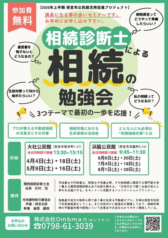 相続診断士による相続の勉強会(2026年度上半期公民館活用促進プロジェクト)