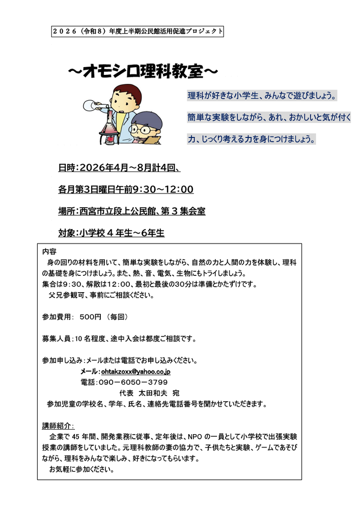 オモシロ理科教室(2026年度上半期公民館活用促進プロジェクト)