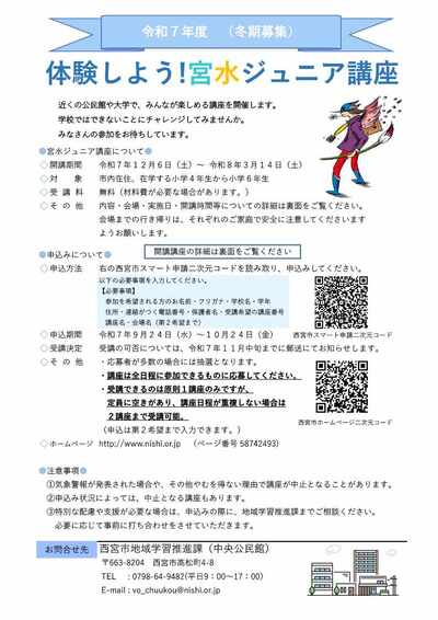 宮水ジュニアには、楽しい講座がたくさん!~やってみたいことが見つかるはず~
