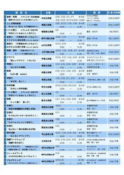 18 | クラフト | 甲東公民館 | 20人 | 必要 (2,000円) | 12月13日(土曜),1月17日(土曜) 1月31日(土曜),2月14日(土曜) 全4回 10時00分~11時30分 |