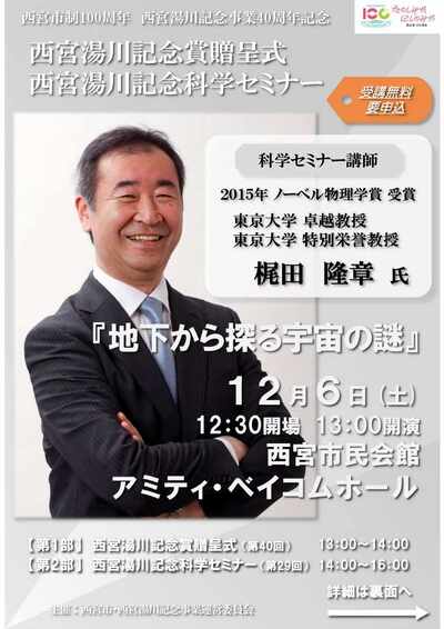 今年度は西宮市制100周年 西宮湯川記念事業40周年を記念して、下記のとおり実施いたします。