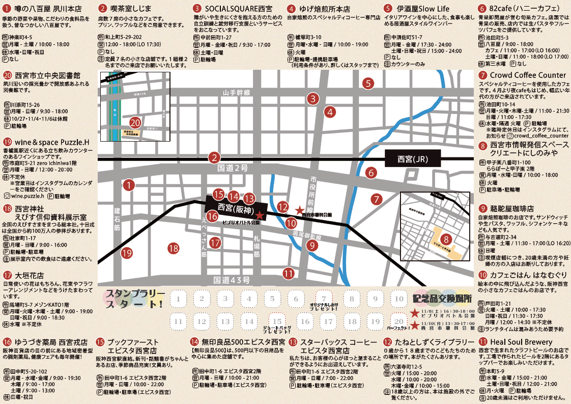 | 西宮市情報発信スペース クリエートにしのみや | 甲子園八番町1-100 ららぽーと甲子園2階 |