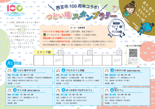 お近くのスタンプラリー参加つどい場は「にしま~れ(西宮市社会資源情報サイト)(外部サイト)」で検索!
