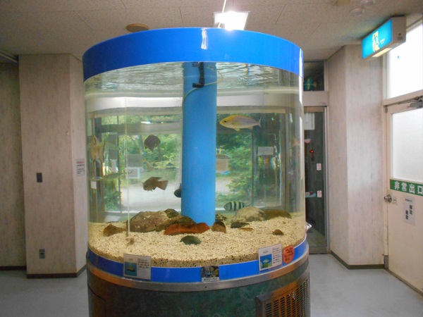 正面玄関から入ってすぐにある大きな水槽、なにが泳いでいるのかな?