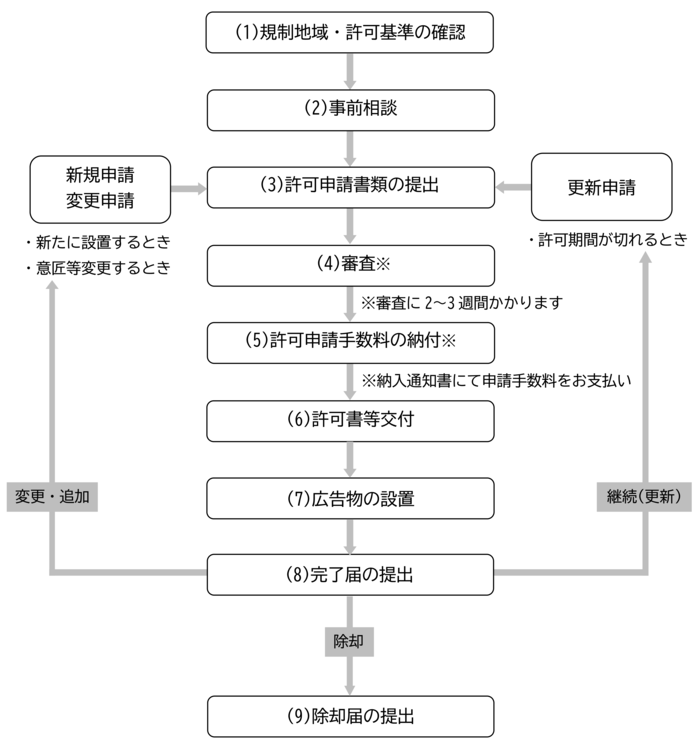 屋外広告物を設置するまでの流れは以下のとおりです。
