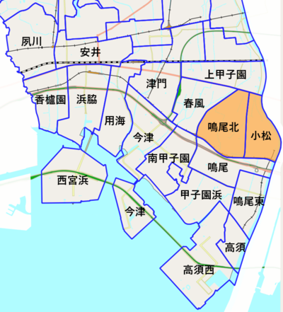 鳴尾北小学校・小松小学校区の位置