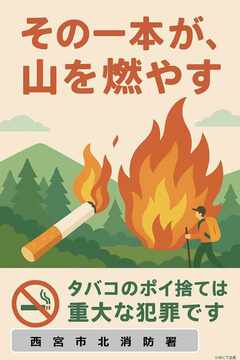 北消防署では、山火事予防を呼びかけるため、ポスターを作製して広報を行っています。