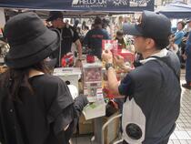 西宮消防署のブースでは、西宮市消防団本庁南地区5分団の協力のもと子供たちが消防士の防火衣を着装しミニ救急車に乗って撮影したり、消防に関するミニゲームを行ったり、とても楽しそうにしていました。