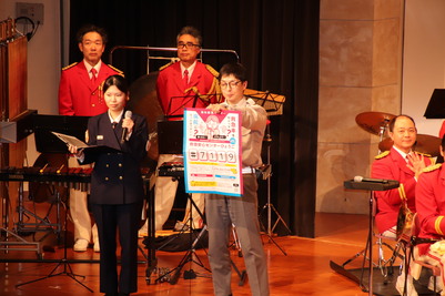 今回の演奏会は、子どもから大人まで、音楽を楽しみながら、防火や救急のことを知ってほしいという思いを込めて、演奏のほかに、シェイクアウト訓練、防火広報や救急広報も実施しました。