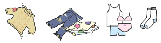 - 靴下、下着、毛糸製品、着物、汚れたり破れたりした衣類など