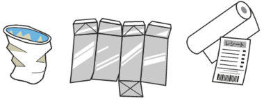 - 紙コップ(防水加工品)、アルミ箔を貼った紙パック、感熱紙(レシート・FAX用紙)など