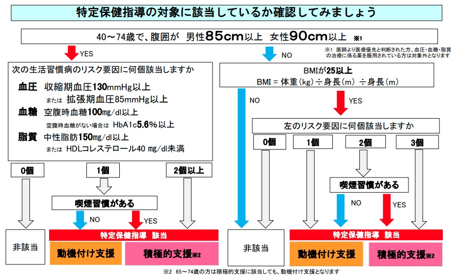 下記フロー図で特定保健指導の対象に該当しているか確認してみましょう。