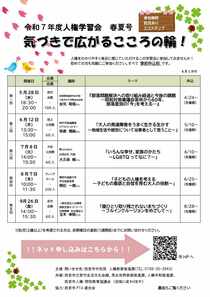 下記チラシでは、学習会についてまとめております。ぜひご覧ください。チラシ春夏号(PDF:680KB) (4月1日現在)
