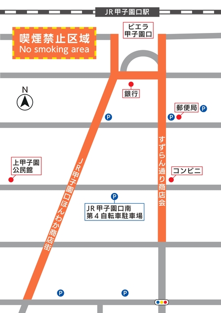 令和8年4月1日より、新たにJR甲子園口駅南側区域を喫煙禁止区域に指定します。